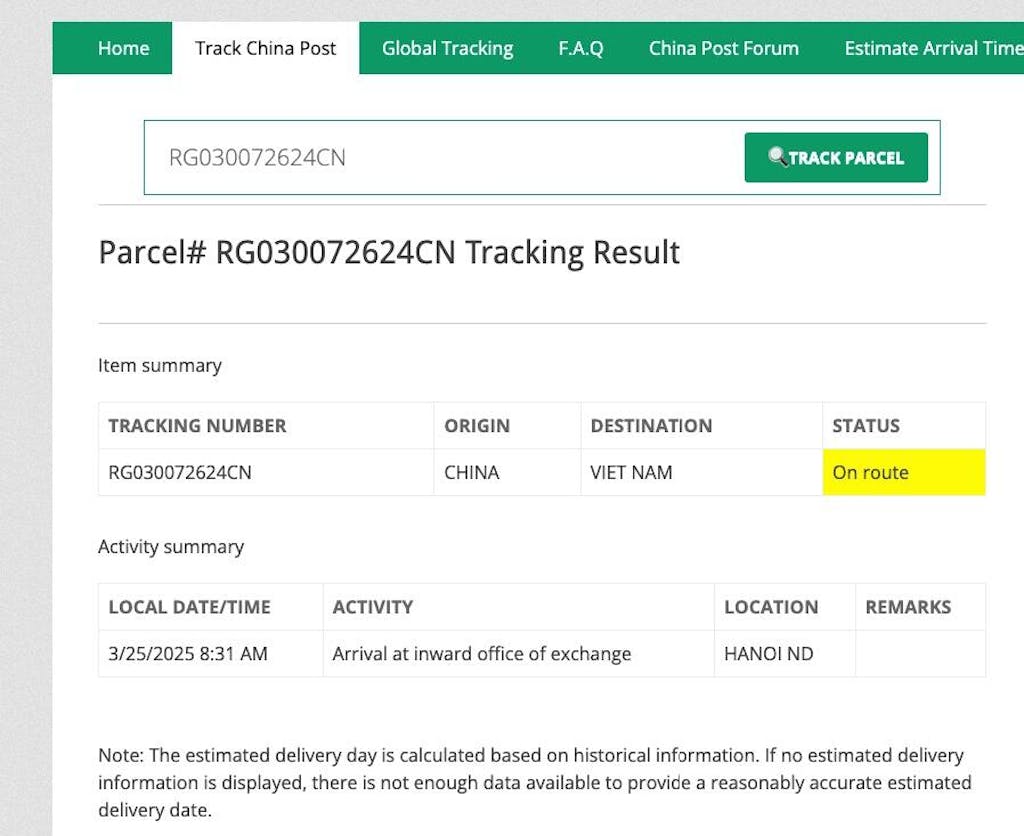 We‘ll ship the item in two business days and upload the tracking number ASAP, but the time of delivery depends on local delivery speed and customs clearance, which we cannot fully control. For US, Australia, New Zealand, Japan, Mexico, the ETA is 7-10 working days. For Hong Kong, we ship via SF Express. For Singapore, Malaysia, Thailand, Vietnam, the ETA is 7-15 working days. For rest of the destinations, It takes 15-20 working days for you to receive the parcel.