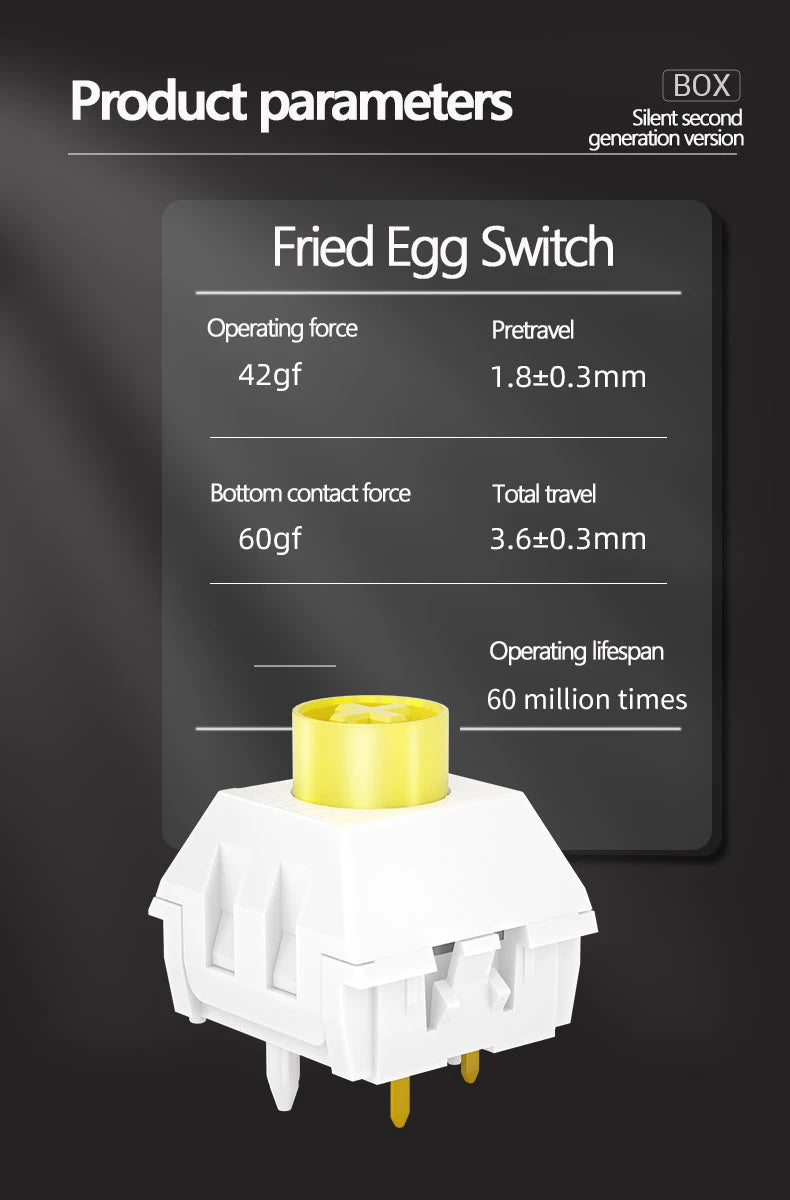 Kailh Fried Egg V2 Mechanical Keyboard 5Pins Silent Switch Waterproof Dustproof Smooth Linear Self lubricating Yellow