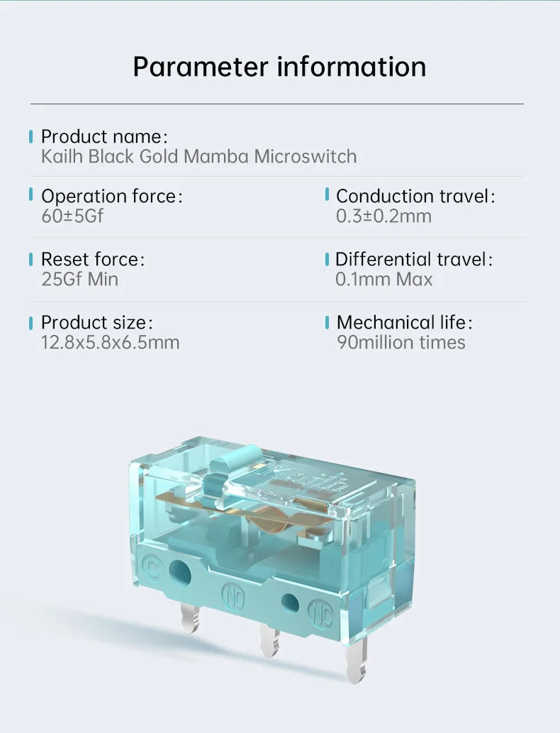 Kailh GM8.0 Upgraded Mouse Micro Switches Long Life 90million Times Black Gold Mamba Micro Switches