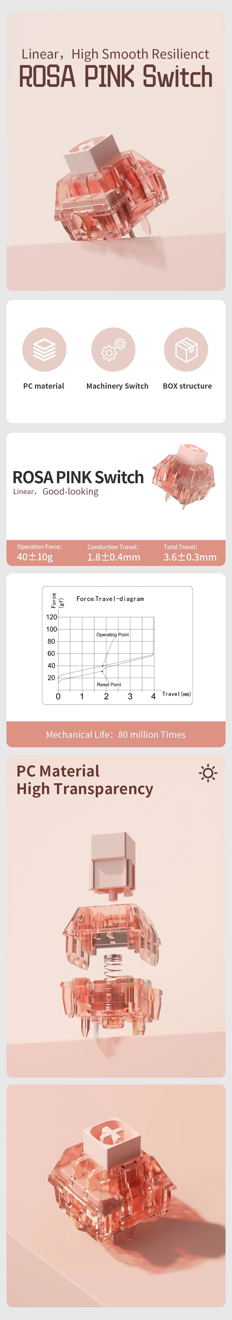Kailh Rosa Pink Keyboard Switch Customized Hot Swap Mechanical Keyboard Box Switch Linear 5Pins Light Pressure