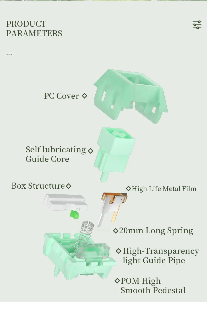 Kailh Spring Keyboard Switch Mechanical Light Pressure Linear Advance Bottoming Speed Switches 5Pins