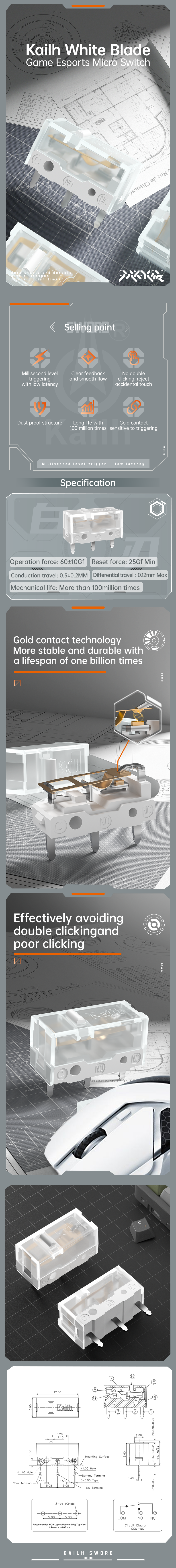 Kailh Sword GM X Micro Switch 100 Million Click Game Microswitch Mouse Button